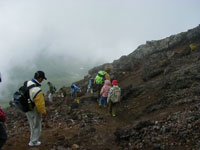 11:25 下山4九合目から山頂までの山道は傾斜がありかつ狭いので注意が必要です。 |